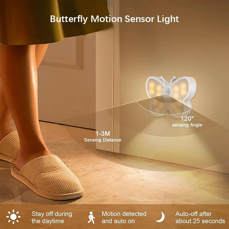 مصباح LED بشكل فراشة مع حساس حركة